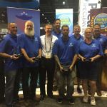 3. The Pool PRIZE Party The Expo culminated with the Pool Prize Party, where various prizes were raffled off to lucky attendees by aquarium impresarios Wayde King and Brett Raymer (pictured in black) of Animal Planet's hit reality show "Tanked." The winner of an all-expenses paid trip to next year's Las Vegas show was Jeremy Thomas (center) of Jeff’s Pool & Spa Service.