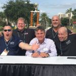 11. The Best BBQ Representatives from Saffire Grill (back row) were elated to collect their trophy for culinary excellence at the fun and tasty BBQ Cookoff. The judging panel included the hosts of Animal Planet's reality television show "Tanked," Wayde King and Brett Raymer (left and right, front row) and Ray Giovine, vice president, sales,