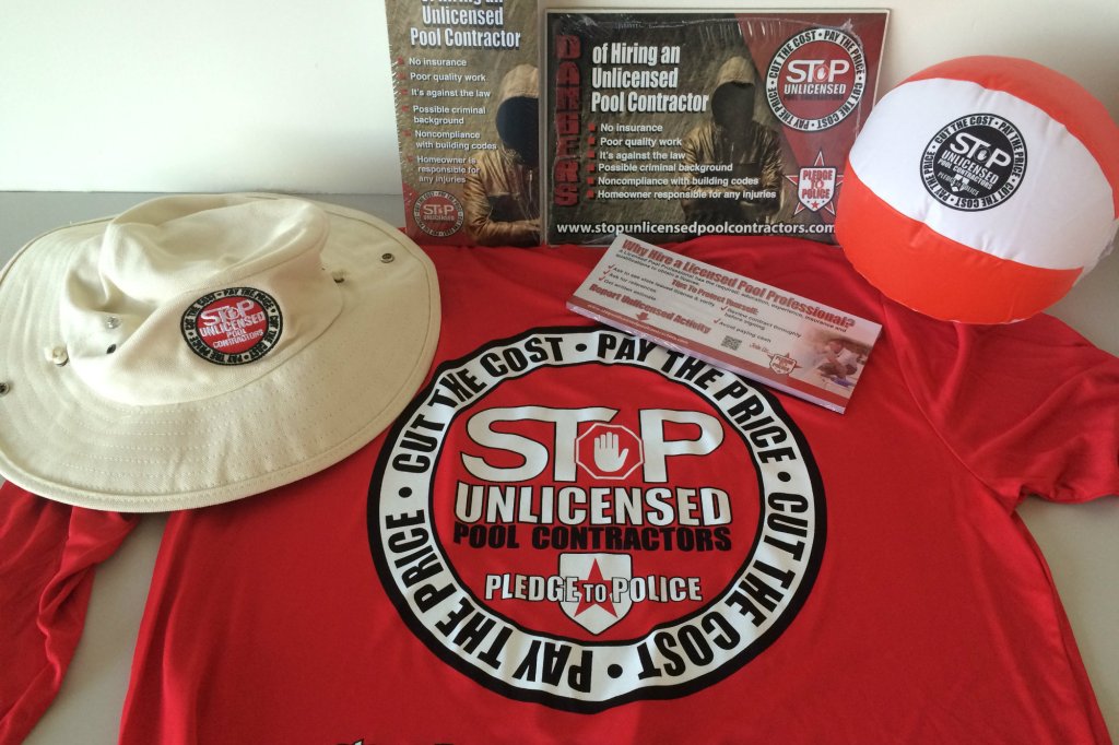 Because local authorities can do only so much, Horner’s campaign urges consumers to report unlicensed activity at its website stopunlicensedpoolcontractors.com, which links directly to the state’s Department of Business & Professional Regulation. Legitimate pool professionals can sign up to receive a kit that includes a shirt and hat bearing the logo, “Pledge to Police,” plus materials designed to raise awareness — statement stuffers, door hangers, posters, truck decals, beach balls — that they can distribute to customers.