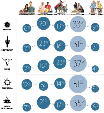 Elite: Affluent families and older couples, ranging in age from 35 to 64. Half have children at home and many have post-graduate degrees. Their homes are worth more than $500K. They value privacy, prestige, features, customization and options.