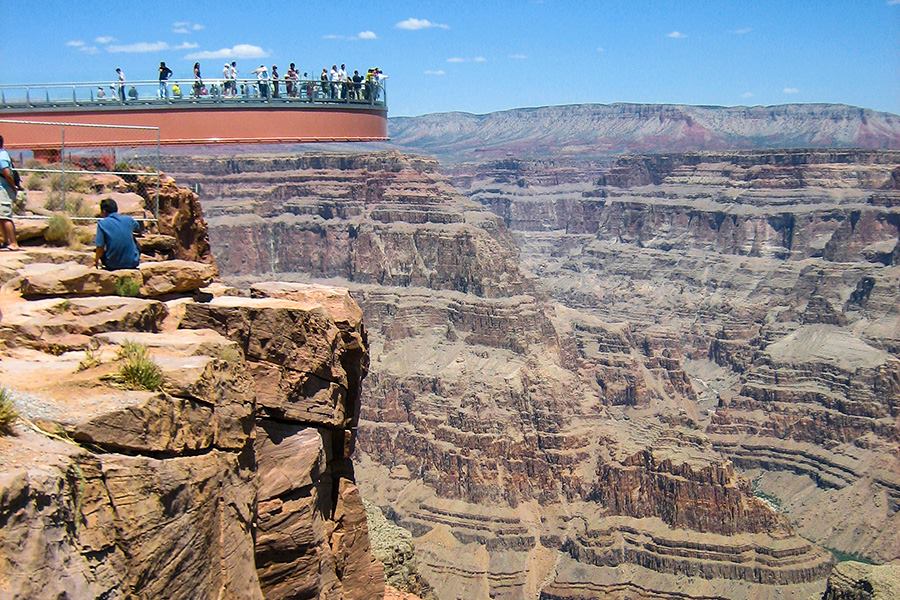 Grand Canyon West is owned by the Hualapai Tribe, which also operates the Skywalk, a horseshoe-shaped glass walkway suspended over 4,000 feet above the Grand Canyon’s floor. Opened in 2007, visitors to the Skywalk get a breathtaking view of the Grand Canyon never seen before, surrounded by transparent glass on all sides of the walkway and 70 feet from the canyon’s rim.