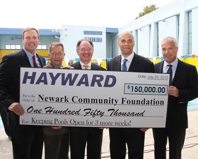 Hayward Industries has donated $150,000 to the city of Newark, N.J. The funds will keep all six municipal pools open through the third week of August, allowing residents to enjoy free swimming through the end of the summer season.