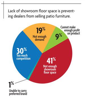 Respondents cited a lack of showroom floor space as the primary reason for not carrying patio furniture. However, abundant space isn’t necessarily required, according to Steve Lopez.