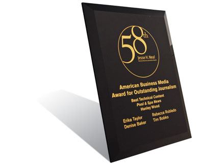“Just being nominated once in a journalist’s lifetime is a high recognition,” said Dick Coleman, publisher of Pool & Spa News. “But actually winning a Neal Award is, indeed, a very high honor for a very talented and professional journalist who has made us all very proud.”