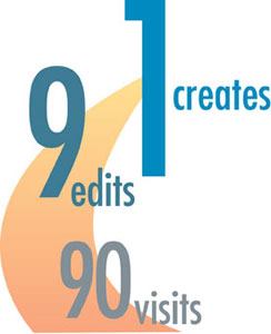“If there 1,000 users, for example, 900 users will just visit without making any changes,” he says.” Ninety people will actually edit the pages, and just 10 people will truly create content.” (You can get a more in-depth explanation of the principle at www.90-9-1.com.)