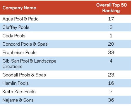 We like to learn as much as we can about the Pool & Spa News Top 50 Builders.