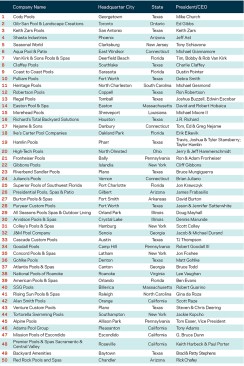 And once again, we see a variety of business models represented, from high-volume leaders to the elite of the elite. With more builders participating in the program this year, we also have some new names. This year’s group accounted for nearly $1.8 billion in total revenues, nearly $1.3 billion in new residential construction revenue, and 15,578 new pools.