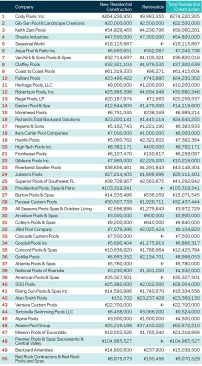 Here are the vital stats for our Top 50 Builders. Total Residential Construction Revenue, denoted with the blue heading, is one of the five pillars for determining a company’s rank. It is calculated by combining New Residential Construction and Renovation revenues.