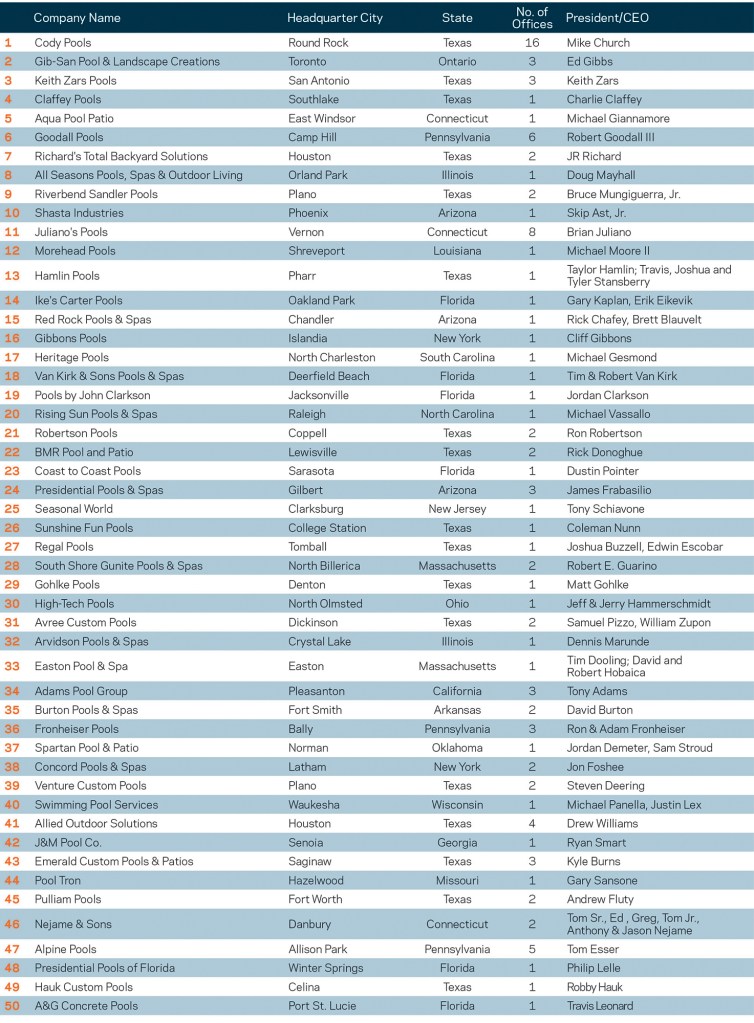 These companies continue to succeed no matter the external circumstances. As a group, they earned $1.8 billion in total revenue in 2023. In that same time period, they generated a total of $1.4 billion in residential construction and excavated 9,447 pools. They also employ 4,536 full-time employees.