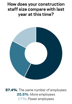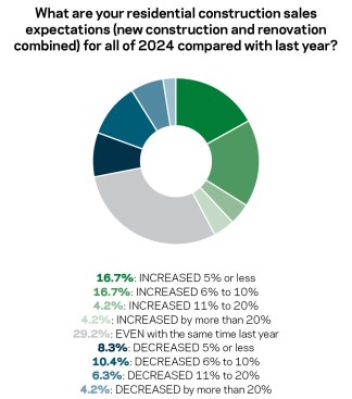 A mostly positive outlook: 71.2% expect residential construction sales to increase or remain even this year. Just over 26% expect a downtick.