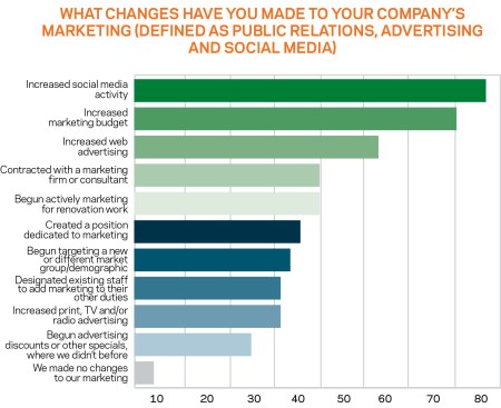 Fewer consumers are knocking at their doors, so builders now invest more in marketing, with 70.8% raising their budgets. Increased social media and web advertising were the most popular changes.