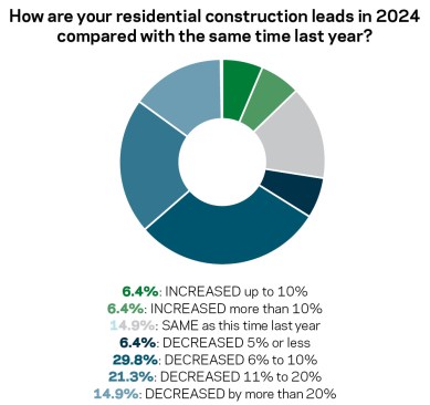 For the most part, these builders are having a positive 2024 so far, with 65.9% seeing increases or remaining even. However, 34% are experiencing reductions.