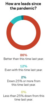 In one of the most encouraging survey outcomes, a full 98% of Top 50 builders said leads have remained at least level with last year — with 86% saying leads even surpassed the same time last year.