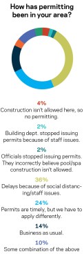 From the beginning, builders expressed concerns about gaining permits to work. Fortunately, the vast majority were able to continue acquiring permits, with only 8% seeing halts in permitting for various reasons. A significant amount — 36% — did experience delays.