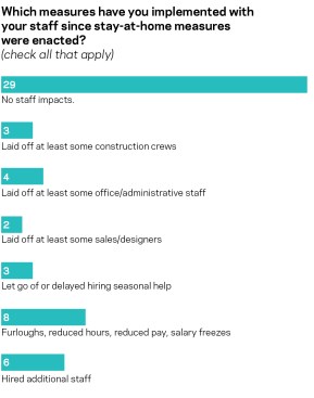 A few of the Top 50 had to lay off staff or delay bringing on seasonal help. This was mostly seen in the Northeastern states that implemented temporary work stoppages. However, 29 of the 50 saw no impact — and six even expanded their staffs.