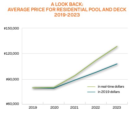 Despite the downtick in revenues seen in 2022, the average contract price for a pool and deck continued to go up. While materials and labor costs may have contributed to this, builders also anecdotally report including more in their projects.