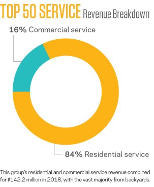 - This group’s residential and commercial service revenue combined for $142.2 million in 2018, with the vast majority from backyards.