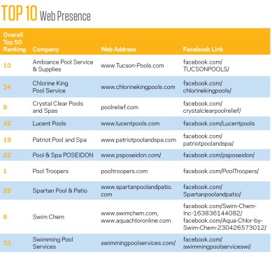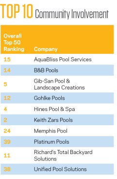 We at Pool & Spa News believe that the best companies excel in a variety of business disciplines, in addition to exhibiting technical mastery. That’s why, for our Top 50 Service program, we ask companies to supply plenty of information about themselves so we can apply five judging criteria: