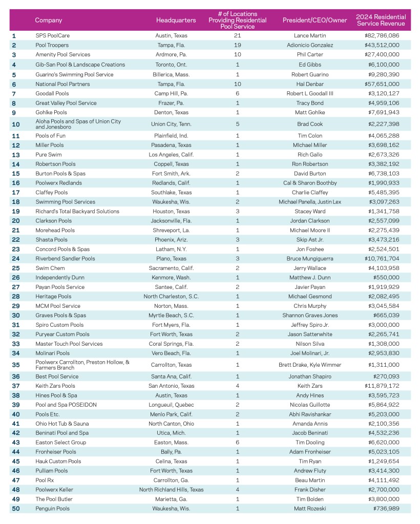 It’s our honor and joy every year to recognize the 50 top companies that keep everyone’s pools and spas safe, clean and performing optimally. This year was no exception.