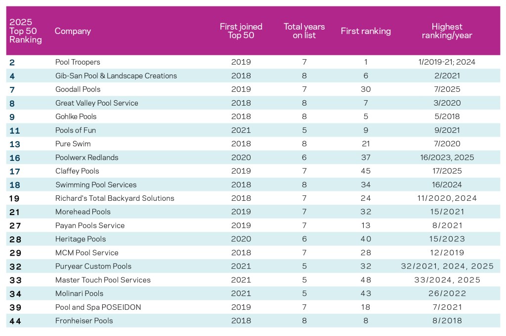 These companies have appeared on the Top 50 Service list for at least the past five consecutive years.