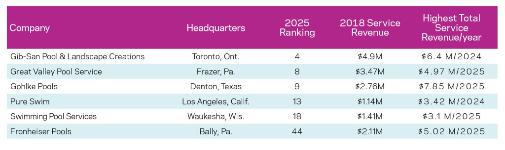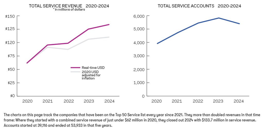 The following companies have been featured on the Top 50 Service list since the program began in 2018.