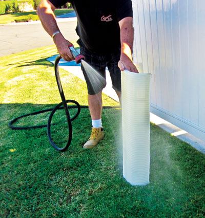 It can take hundreds of gallons to clean a sand filter, says Michael Orr, executive director of business development with the Foundation for Pool & Spa Industry Education in Sacramento, Calif., “Where with a cartridge, it takes usually less than 10 gallons of water to clean it. You could take it down to your local do-it-yourself carwash and do it, if you used the proper technique.”