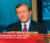 Abigail Taylor, 6, suffers an evisceration in a country club wading pool, generating national publicity and garnering additional support for the safety bill. The tragic incident leads to the addition of commercial-pool requirements.