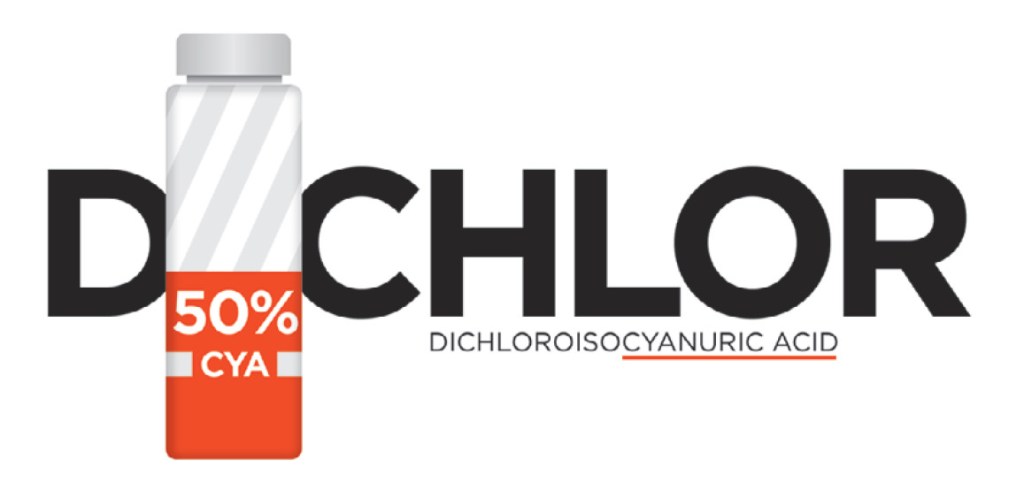 While trichlor is still a popular choice for chlorinating swimming pools, most hot tubs are chlorinated with dichlor. Dichlor is about 50% CYA. This means that for each 10 ppm of chlorine added to the water from dichlor, the CYA increase is 9 ppm.