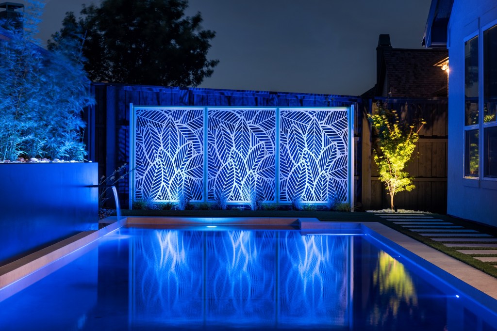 “It gives us the best of both worlds,” Angell says. “If the client is throwing a big party and they want a little more excitement and panache, they can use color to bring the whole backyard to life. But for normal everyday … you can introduce something that is a little bit more soothing and have a completely different mood.”