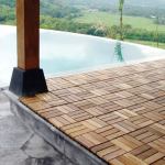 âWe recommend letting them sit in the environment for at least two weeks so they can adjust,â says Marion Hamilton, vice president of Dallas-based East Teak Fine Hardwoods Inc., whose company recently installed teak tiles around several pools at Hilton