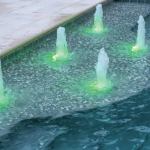 C) Shelf talkers: A pleasant sound emanates from the pool’s sun shelf, which features five bubblers. Atlas was looking for uniformity of shape and height, and constructed each of the mini-geyers to shoot water 18 inches into the air.