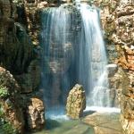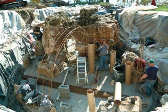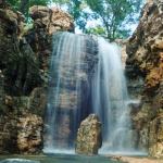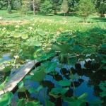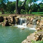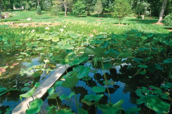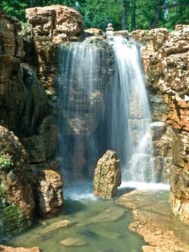 Some of the most dramatic elements of Archer-Wills’ design were the steppingstones across the streambeds, the adult-size grotto within the largest of the waterfalls, and the unusual boardwalk built across one of the ponds.