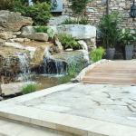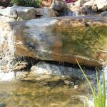 Piecing a natural puzzle: The homeowners asked for a stream and … Piecing a natural puzzle: The homeowners asked for a stream and rock waterfeature with a wide fall. A 300-foot stream comes from the upper property down near the pool before spilling over into the final basin. The bottom fall required the right kind of stone. “To make this wide waterfall appear natural, that rock had to look like it had always been there,” Dorsey says. “It had to look like bedrock — a large rock with horizontal grain. “If the grain of a rock in nature is tilted up, you won’t have a wide waterfall. It’ll be coming off the side, in a narrow little gush of water.” There are two kinds of waterfalls in nature, he explains — the type involving large stones like his customer wanted, and others with smaller colluvial rocks that are more jumbled, less structured. “Colluvial waterfalls are generally not very high, and they exhibit concentrated flows,” he says. “Bedrock situations are the only time you get the Niagara Falls look, the Yosemite Falls.”