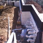 This shows the plumbing going into the equipment room, which is … This shows the plumbing going into the equipment room, which is in the basement of the guest house. We have 4-inch pipes for most of the suctions and returns. The lines run about 80 feet to the pool.
