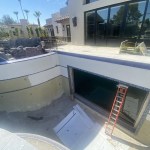 This includes the two-level grotto with deck on top. This will include a full bar with plenty of appliances, so we’re using residential house plumbers to handle the drain lines and plumbing fixtures. We’re finishing with the spas and swim-up bar areas, and starting to get the cabinets and finishes in place.