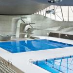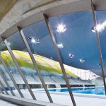 Flexible DesignLighting is designed to allow Olympic events to b… Flexible DesignLighting is designed to allow Olympic events to be filmed in HD. Other features are meant to support more long-term use. The pool includes a traversable boom at one end that allows the pool length to be accurately set, and a submersible boom with a movable floor at the opposite end, to create a flexible space.