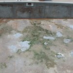 The rookie on the crew pulled back the liner, revealing a Rorschach test of black and pink splotches that spread across the floor like an oil slick. He placed a hand on the slimy surface, causing the site superintendent to gasp. “That’s radioactive algae!” The panicked apprentice fled to wash off the toxic sludge, but the ensuing eruption of laughter suggested that he’d been had. He’d have a hard time living that one down.