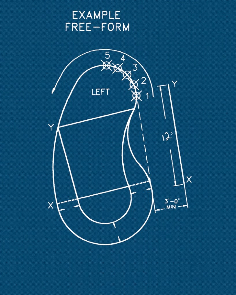 Next, measure the distance between both X and Y to various points along the edge of the pool. Depending on the size of the pool and the curvatures, select points about 1 or 2 feet apart all the way around the perimeter. Each of these points should be numbered.