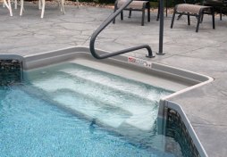 Our vinyl-covered open-top Polymer and Steel Stair Systems extend your pool’s interior finish onto your steps, benches and coves creating an uninterrupted, continual, elegant look.