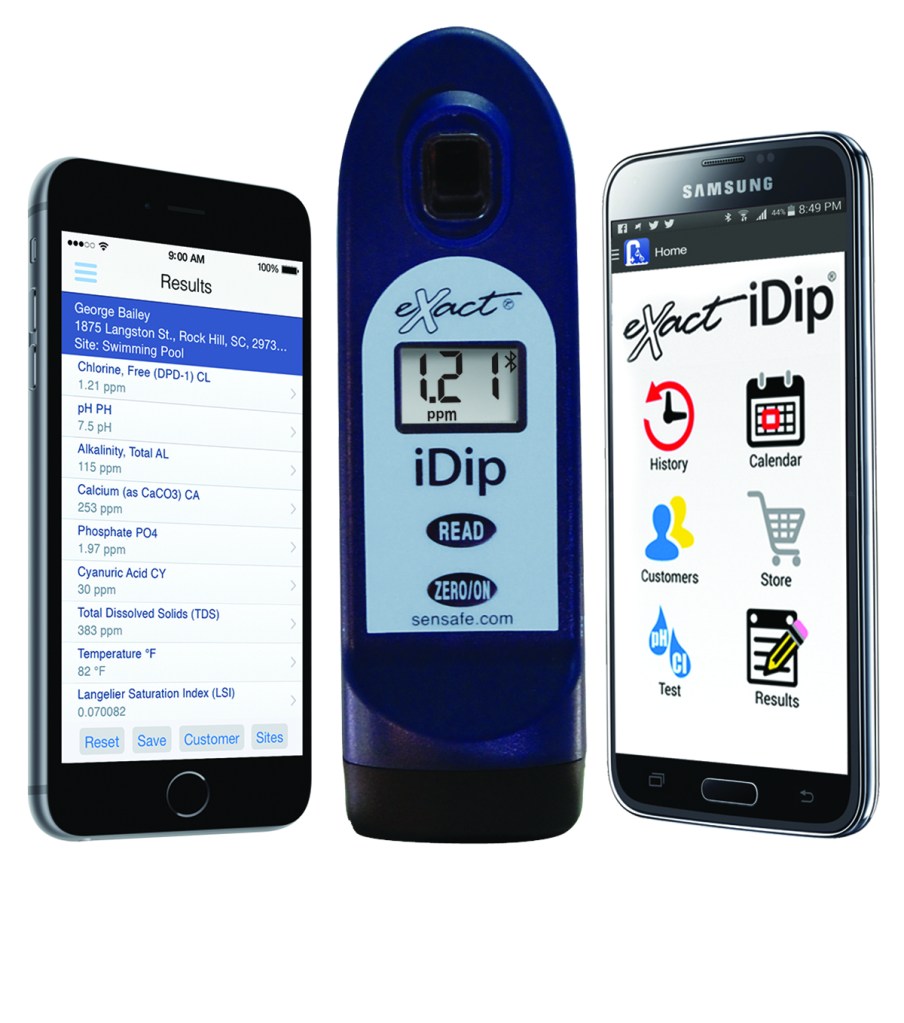The eXact iDip Smart Photometer System by ITS now is certified by NSF International, a global independent public health and safety organization. The recent upgrade of the app provides users the ability to determine LSI, magnesium hardness, RA and sodium without any written calculations.