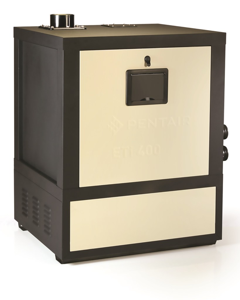 The ETi 400 pool heater’s titanium heat exchanger is designed to stand up to harsh water conditions. Its control panel can be rotated 180 degrees to accommodate left or right water plumbing configurations, and it also allows for front or rear gas plumbing connection.