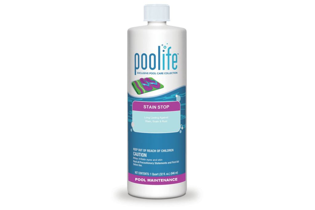 Poolife Stain Stop is a sequestering agent that holds iron, manganese, copper and calcium in solution to stop them from reacting with other elements in the water. Stain Stop prevents staining, scaling and rust on pool equipment, pipes and fittings.