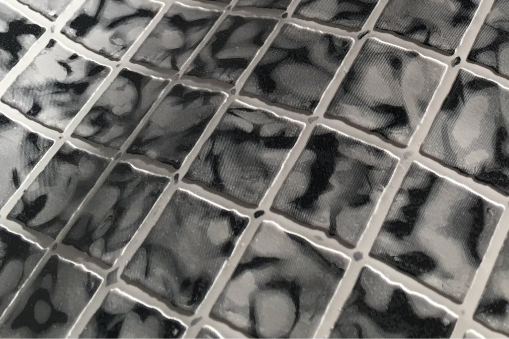i2M has created a new embossed material that gives its mosaic pattern the look and feel of true, in-laid, mosaic tiles. The Grey Mosaic material is part of The Boss line of textured vinyl, designed to improve the pool liner look and feel. Made in the USA.