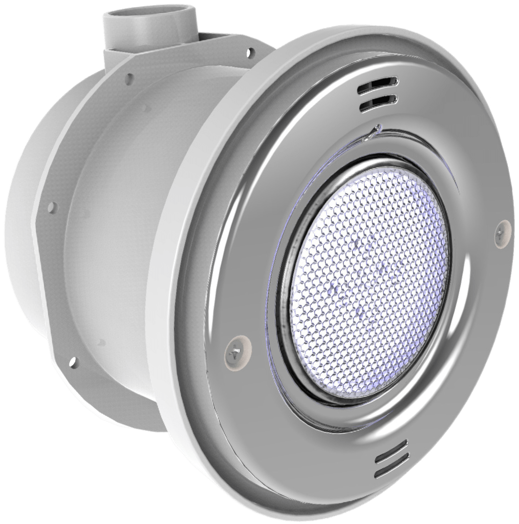 Highlight the unique finish and shape of a pool, spa or fountain at any depth with Lite Star. It allows up to 20 degrees of light-angle adjustment, is energy efficient, and easy to install. It includes a strong PVC niche with pre-drilled tie wire holes, multiple conduit ports, and an integrated water stop.