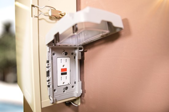 For example, the company’s fresh take on a standard pool component, the weatherproof power outlet cover, gives a sleek new look to a clunky poolside mainstay. The code-compliant cover features an innovative see-through window that smartly retracts into the cover when the outlet isn’t in use.
