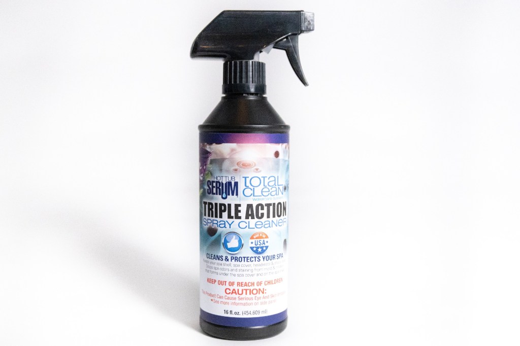 Triple Action Spa Spray is formulated to stop musty odors often noticed when opening a hot tub and clean the spa shell above the water line, preventing the accumulation of bacteria and other organic contaminants. It also prevent mold and mildew from developing on spa covers.