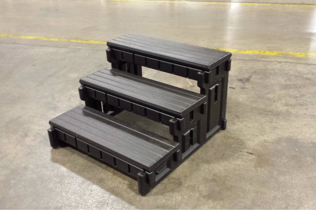 The new Ultra Step spa step offers an economical three-tread option for taller spas, or customers who need more stability. Available with black side walls and black treads, the Ultra Step ships in one carton and can be easily displayed in a spa showroom.