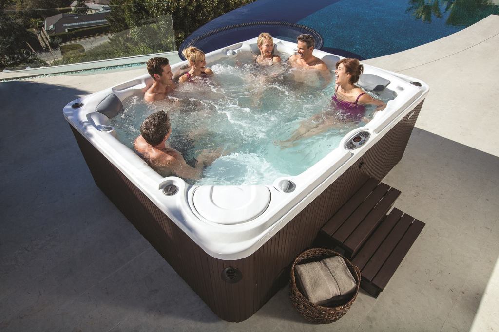 The Gleam, the newest addition to Hot Spring’s Limelight Collection, is more than 9 feet long and 38 inches deep, with seating for eight. It features 58 directional jets, 13 specialized hydrotherapy jets, the patented Moto-Massage DX moving jet — dual nozzles that direct powerful streams of water up and down the entire length of the back — and the Raio point-of-light system. Contact: (760) 598-6464; www.hotspring.com