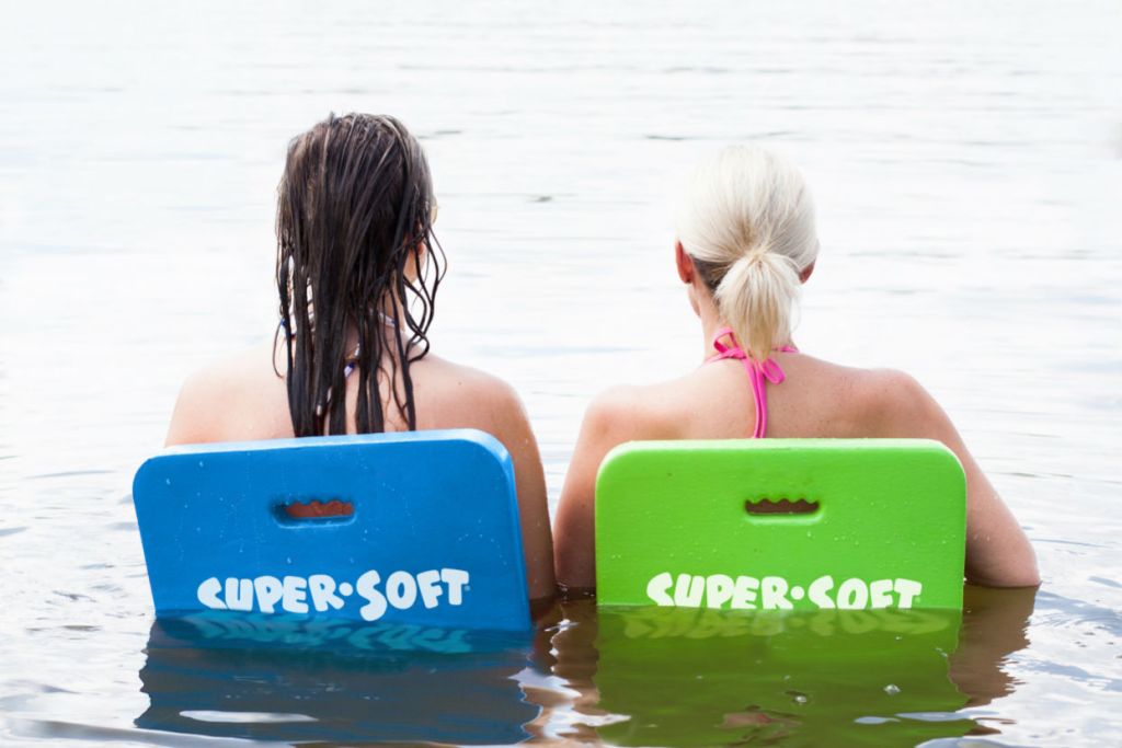 The Super Soft Deluxe Saddle is a saddle-shaped float made to keep a user’s arms and legs free to paddle about. A new shape modification provides a more comfortable floating experience. Made of soft, vinyl-coated foam, it’s available in a variety of colors.
