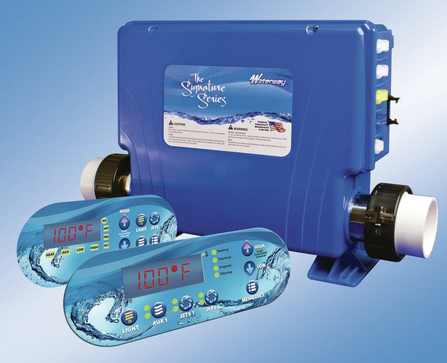 Waterway Plastics’ Signature Series Spa Pack features a reliable, state-of-the-art electronic circuit design. Available in two configurations, the easy-to-install spa pack offers user-friendly, self-diagnostic capabilities. The simple design is attractively housed and offers two choices of topside controls. The Signature Series Spa Pack meets U.S. and Canadian safety standards.
